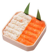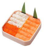 脂ののったプレミアムサーモントラウトと繊維がしっかりとしたかに肉を贅沢に敷き詰めた押し寿司です。